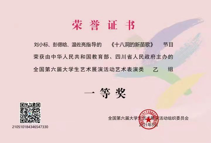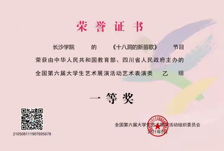 此前,该作品已相继荣获2020年“湖南省第七届青年文化艺术节”金奖,2020年“湖南省第六届大学生艺术展演”一等奖,第六届全国大学生艺术展演舞蹈乙组一等奖等。