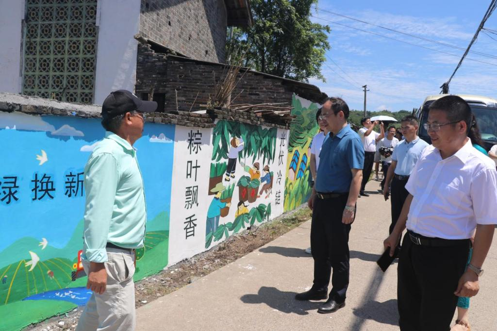杨小云一行参观了由我校捐建的猫山文化广场、暑期“三下乡”实践团创作的墙体彩绘,在建的冷库和新建的粽叶种植基地,看望慰问了部分受灾居民,详细了解居民的生活状况、受灾情况和当地经济发展状况,并深入“三下乡”师生宿舍与师生代表进行亲切交流,热情询问师生们的实践收获,充分肯定了驻村工作队的工作成效和实践团队的实践成果。